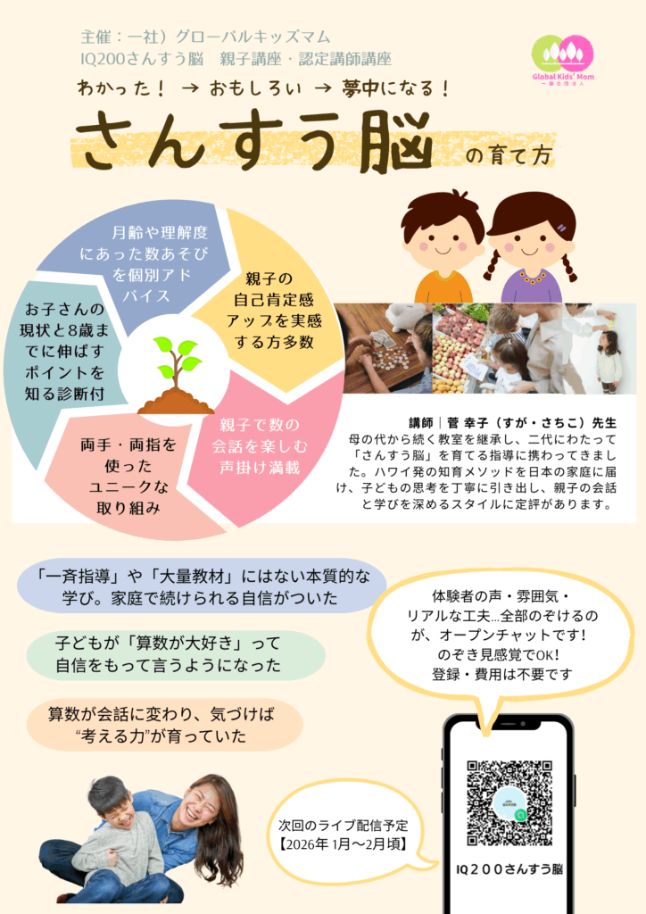 次回の募集等については、算数脳講座公式LINEまでお問い合わせください